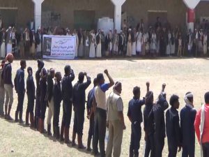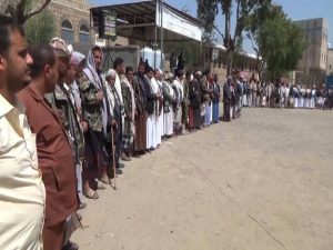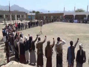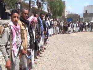 وقفة حاشدة في مديرية ذي السفال بإب وفاء للرئيس الصماد ودعما للقوة الصاروخية .