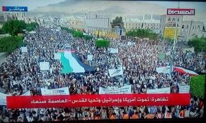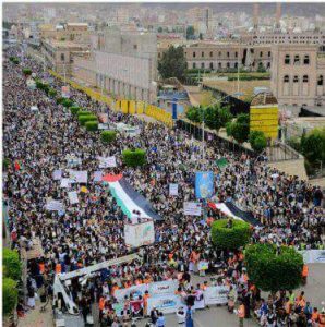 بالصور حشد جماهيري كبير بالعاصمة صنعاء تحت شعار(تموت أمريكا وإسرائيل وتحيا القدس)