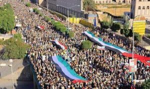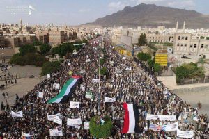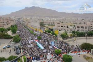 وحمل المشاركون في المسيرة الأنظمة العربية المنبطحة ومشيخات الخليج المسؤولية الكاملة فيما يحدث من انتهاكات وجرائم بحق الشعب الفلسطيني وتجريف للأرض والمقدسات من قبل العدو الصهيوني ومن خلفه أمريكا.