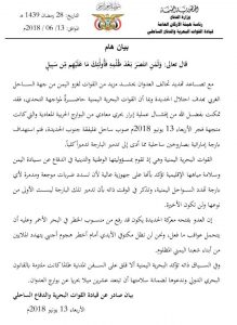 عاجل و هام : بيان صادر عن قيادة القوات البحرية وقوات الدفاع الساحلي .