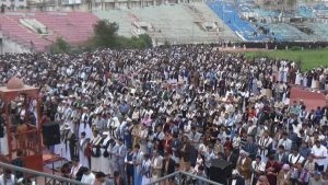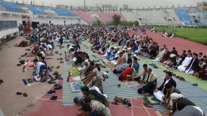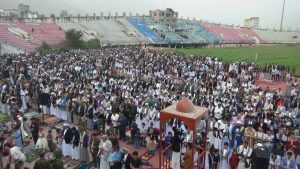 بالصور : قيادة محافظة إب تؤدي صلاة العيد وخطبتيها مع جموع المواطنين في الإستاد الرياضي .