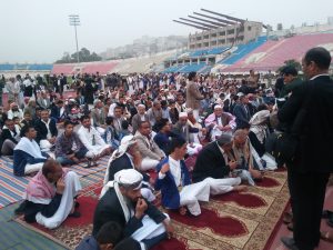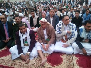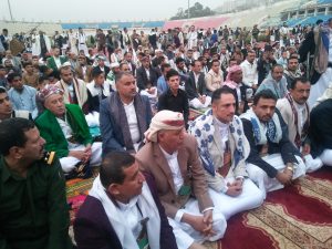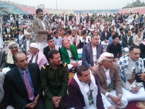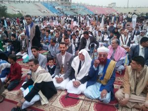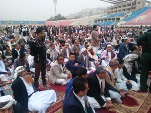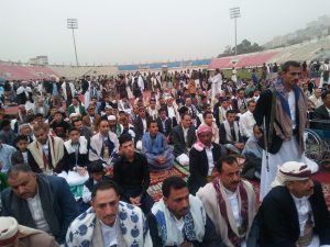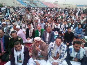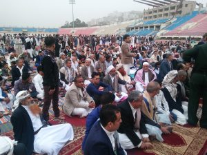 إدى محافظ محافظة إب اللواء عبدالواحد صلاح ومعه وكلاء المحافظة ومدراء المكاتب التنفيذية وقيادات أنصار الله والمؤتمر الشعبي العام صلاة عيد الفطر المبارك وخطبتيها مع جموع المواطنين الذين احتشدوا في الإستاد الرياضي بمركز المحافظة .