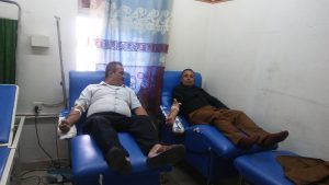 وفي التدشين الذي تم يوم أمس من قبل وكيلا محافظة إب الدكتور أشرف المتوكل وصادق حمزة في بنك الدم بمستشفى الثورة العام في مركز المحافظة حملة تبرع بالدم لجرحى الجيش واللجان الشعبية في جبهات العزة والشرف .