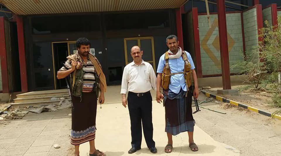 بالصور : وزير حوثي يتجول مع مرافقيه داخل مطار الحديدة الدولي