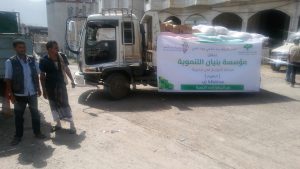وأشار محمود وجية الدين إن مؤسسة بنيان أصبحت غنية عن التعريف لما تقوم بة من توزيع سلال غذائية تنموي وعمل طارئ فقد وزعت بجميع محافظات الجمهورية وعلى سبيل المثال بمديريات محافظة الحديدة ونحن الآن بمديرية الظهار نستكمل بقية مديريات محافظة إب ونستهدف الأشد فقراََ والاغنياء من التعفف التي لم يتم أستهدافهم من قبل المنظمات الاخرى هي تشمل الشهداء والاسرى الجرحى ، وميزة مؤسسة بنيان أنها تحمل السلة الى المنزل ولا يوجد تصوير للمستفيد حفاظاََ على كرامة وقيمة هذا المواطن وإرسال رسالة بإنة يمثل لنا قيمة كبيرة وهدف المؤسسة هو تغيير النظرة للأغاثة والنموذج بالعمل الاغاثي بعكس الطوابير والتصوير .