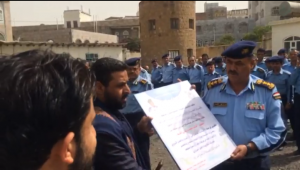 في صباح يومنا هذا الموافق2018/7/15 في وفي الطابور الصباحي لضباط وصف وأفراد المرور بمحافظة إب وصل وفد نقابة النقل العام بمحافظة ذمار برئاسة سيف السنباني عضو النقابة وقدم رسالة شكر وتقدير وعرفان للأخ مدير مرور محافظة إب العقيد خالد محمد أنعم وقد إلقى السنباني كلمة قال فيها :-
