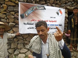 و بعد الزيارة لاسرة تم عمل وقفة احتجاجية لما أرتكبه العدوان و مرتزقته في حق الشهيد الأسير