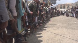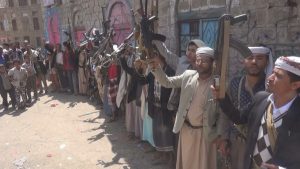 إب نيوز2محرم1440هـ الموافق2018/9/12 :- خرج أبناء وقبائل مديرية الشعر بمحافظة إب في وقفة قبلية مسلحة أعقبها مظاهرة جماهيرية غاضبة، رفضاً للحرب الاقتصادية التي تنتهجها قوى العدوان لتضييق الخناق على الشعب اليمني ومحاولة إخضاعة وتنديداً بالمجازر التي يرتكبها طيران العدوان السعودي الأمريكي الاماراتي ومرتزقتهم بحق أبناء الشعب اليمني .