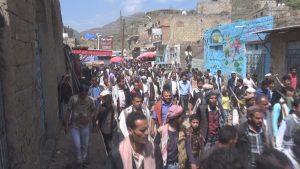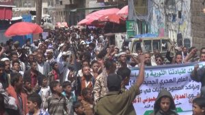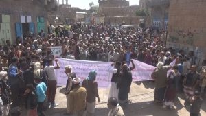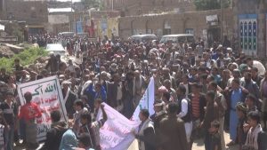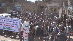 إب : مسيرة و وقفة احتجاجية في مديرية الشعر رفضاً للحرب الأقتصادية التي ينتهجها العدوان .