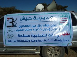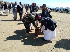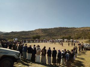 أقام اليوم أبناء المربع الجنوبي عزل بين الضاحتين و جبل خضراء و بني معين و صائر بمديرية حبيش بإب وقفة قبلية مسلحة تنديدا بجرائم العدوان و الحصار و تدمير الاقتصاد و دعما و اسنادا للقوة الصاروخية و تشجعيا للزراعة .