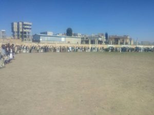 أقيمت وقفة احتجاجية بمدينة يريم لأبناء المناطق الوسطى مديريات ( يريم ، الرظمة ، السدة ، النادرة ) بمحافظة إب للتأكيد على مواصلة الصمود والثبات بوجة قوى تحالف الإجرام والتجويع .