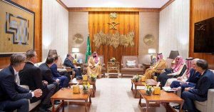 وأظهرت صورة تداولها ناشطون سعوديين لولي العهد السعودي محمد بن سلمان أثناء لقاءه، مؤخراً، بمسؤولين أجانب في غُرفة محصنة تحت الأرض تنعدم فيها النوافذ.