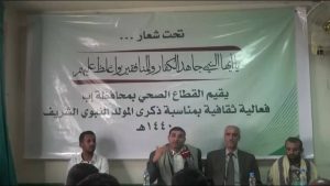اقام القطاع الصحي بمحافظة إب اليوم فعالية ثقافية وخطابية بمناسبة ذكرى المولد النبوي الشريف .