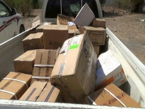 سير أبناء مديريات حزم العدين وفرع العدين ومذيخرة بمحافظة إب قافلة مالية وغذائية ودوائية. دعما للمرابطين في جبهة الساحل الغربي .