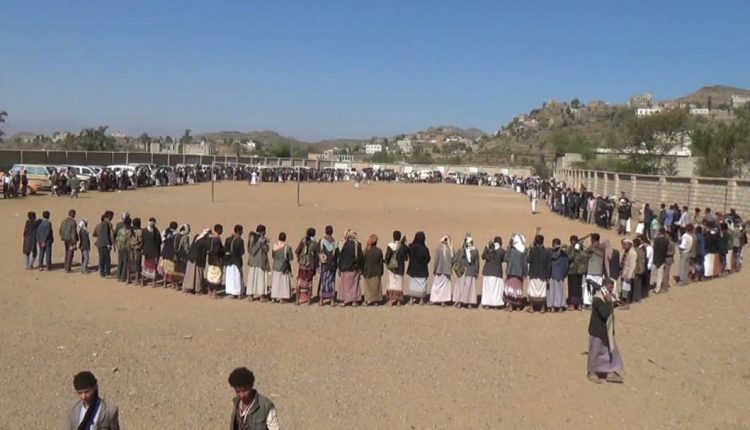 وقفة تعبئة وتحشيد ضد العدوان في مديرية القفر بمحافظة إب .