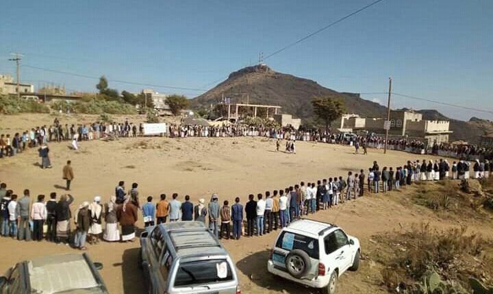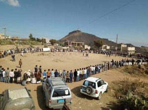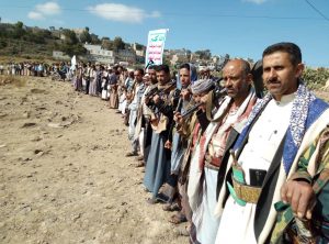 ودعا المشاركون في بيان وقفتهم كافة قبائل واحرار وشرفاء المديرية القادرين على حمل السلاح إلى التوجه نحو معركة الحرية والكرامة .