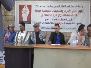 ندوة فكرية بإب حول الصمود الشعبي ضد العدوان وأثره على مشاورات السويد .
