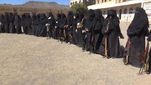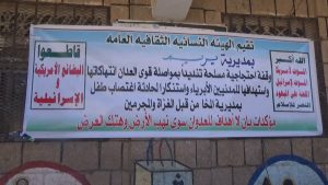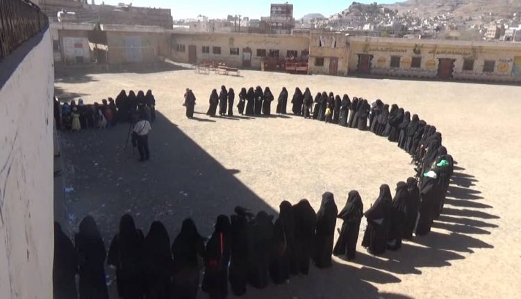 وفي مركز مديرية يريم نظمت الهيئة النسائية الثقافية العامة وقفة نسائية مسلحة ضد العدوان وخروقاته لإتفاق السويد .
