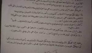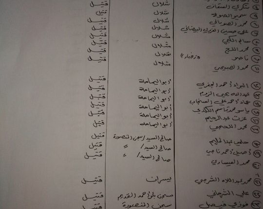 وفي وثيقة أخرى كتبت بخط اليد، كشف المعتقلون- بالاسم أيضاً- عن 23 مفقوداً في سجون شلال وأبو اليمامة ويسران وصالح السيد والتحالف.