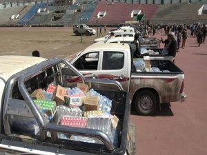 وخلال الوقفة التي حضرها وكيلا المحافظة علي الزنم وقاسم العنسي والمسؤول الإجتماعي يحيى القاسمي أكد المشاركون أن هذه القافلة المتواضعة لا تمثل شيئا أمام عطاءات الشهداء العظماء .