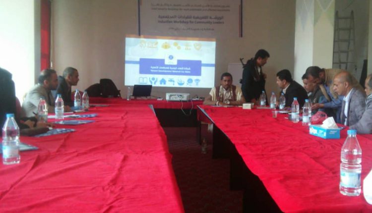 عقدت اليوم بمدينة إب ورشة العمل التعريفية للقيادة المجتمعية لمشروع الإستجابة الغذائية للأسر المتضررة والفئات الأشد فقرا بمديرية العدين بمحافظة إب ، والذي تنفذه شبكة النماء اليمنية للمنظمات الأهلية “YDN” ، بتمويل من صندوق التمويل الإنساني “YHF” ، وبمشاركة 15 مشاركا ومشاركة من فريق المشروع والقيادات المجتمعية بالمديرية.