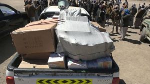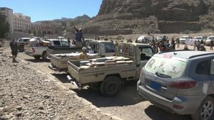 شاهد بالصور : أبناء القفر بإب يسيرون قافلة غذائية ورؤس من الإبقار والماعز للمرابطين في دمت .