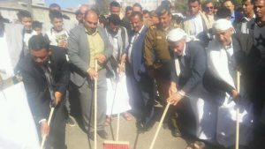 وخلال إطالعه على أعمال النظافة شارك المحافظ صلاح وبحضور المشرف العام ومدير مديرية المشنة علي البعداني ومدير صندوق النظافة والتحسين خالد شرف المواطنين و طلاب مدرسة الايتام وجمعية المعاقين حركيا وأبناء منطقة ذهوب أعمال النظافة ورفع المخلفات من شوارعهم .