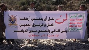 وأكد المشاركون في الوقفة أنهم لن نقبلوا أن يدنس أرضهم المحتل والمرتزق العميل وعلى الباغي والمعتدي تدور الدوائر .