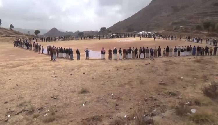 شاهد بالصور : وقفة براءة من الخونة وقافلة مالية من أبناء بعدان بإب دعما للجيش واللجان