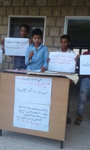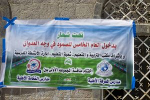 هذا وتواصلت اليوم في الكثير من المدارس بمختلف مديريات المحافظة الوقفات والمسابقات والإذاعات المدرسية والفعاليات المعبرة عن صمود القطاع التعليمي وتنديده بجرائم العدوان في مختلف المحافظات طوال أربع سنوات .
