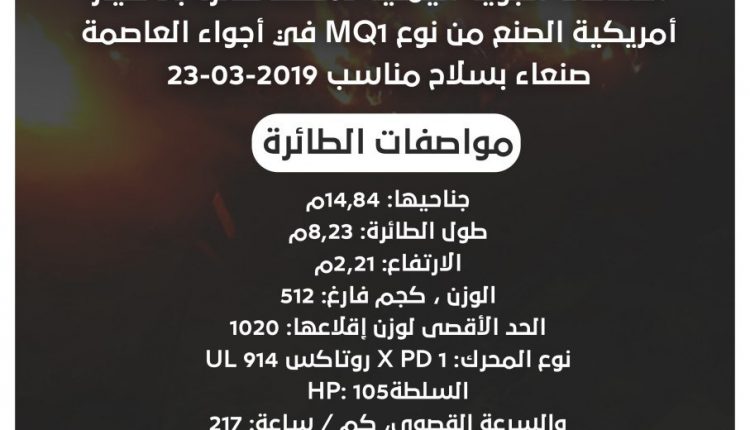 عاجل : ترقبوا مشاهد للحظة إصابة طائرة الاستطلاع المقاتلة “ام كيو 1” في أجواء ضواحي العاصمة صنعاء On مارس 23, 2019 Share Share FacebookTwitterGoogle+ReddItWhatsAppPinterestEmail