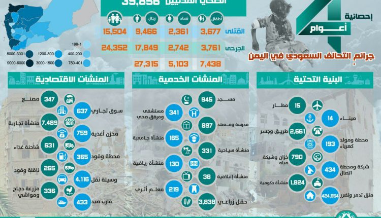 “أنوجرافيك”حصيلة 4 سنوات من العدوان المتواصل على اليمن(عن المركز القانوني) On مارس 23, 2019 Share إلا نيوز 23مارس على وشك أن تدخل عامها الخامس وقد حصدت الآلاف من أرواح المدنيين… إليكم ماذا سجلت حصيلة 4 سنوات من العدوان المتواصل على اليمن(عن المركز القانوني) Share FacebookTwitterGoogle+ReddItWhatsAppPinterestEmail
