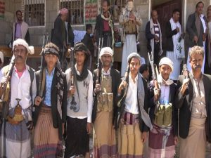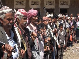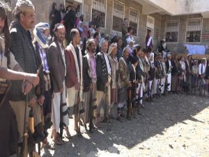 إب :وقفة قبلية مسلحة في الحبلة بذي السفال تنديدا بجريمتي سعوان والتحيتا .