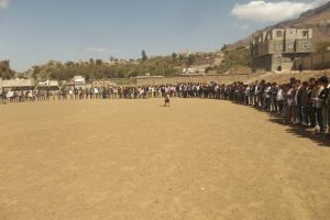 أقيمت في مديرية النادرة وقفة شعبية طلابية تنديدا واستنكارا للجريمة التي ارتكبها مرتزقة العدوان بقصف قرية وادي الردي بشكل عشوائي وسقوط العديد من المدنين بين جريح وشهيد .