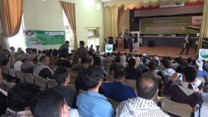 أقيم اليوم بمحافظة إب حفل خطابي وثقافي لإشهار مؤسسة “يمن ثبات” التنموية فرع إب لدعم ورعاية أسر المرابطين في جبهات العزة والشرف و تحت شعار ” لنكن شركاء في صناعة النصر” .