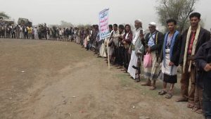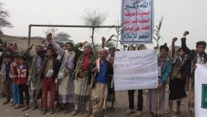 وجدد المشاركون في بيان وقفتهم ولاءهم لله والوطن وقيادة الثورة والمجلس السياسي الأعلى , معبرين عن فرحتهم وابتهاجهم بتحرير منطقتهم وطرد الغزاة والمرتزقة الذين ارادوا إدخال المنطقةفي أتون الصراع والحرب .