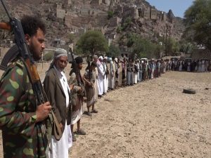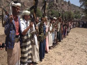 أقيمت في عزلة المزاحن بمديرية فرع العدين محافظة إب وقفة قبلية تنديدا بجرائم العدوان ومرتزقته في العود والتحيتا .