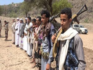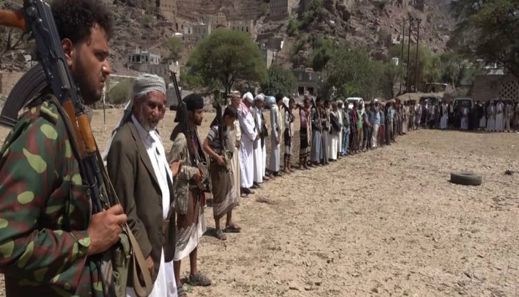 إب : وقفة في مزاحن فرع العدين بإب تنديدا بجرائم العدوان ومرتزقته في العود والتحتيا .