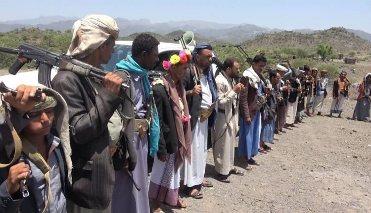 إب : وقفة للعائدين ممن كانوا في صفوف العدوان من أبناء عزلة بني جماعة بالقفر .