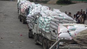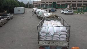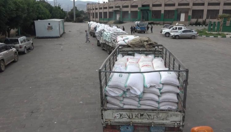 سيرت اليوم مديرية ريف إب قافلة غذائية مكونة من (٩٢١) كيس قمح دعما لأسر المرابطين في جبهات العزة والشرف تسلمتها مؤسسة يمن ثبات التنموية .