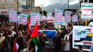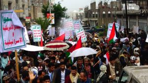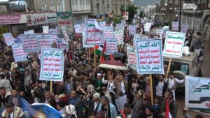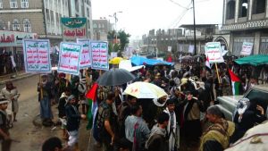 وخلال المسيرة التي حضرها وكلاء المحافظة وعدد من أعضاء مجلسي النواب والشورى سار المشاركون تحت غزارة الأمطار التي انهمرت منذ ساعات الظهيرة الأولى وحتى المغرب والهتافات والصرخات الحماسية المؤيدة القدس وللقضية الفلسطينية والرافضة لصفقة ترامب تدوي في أرجاء مركز المحافظة .