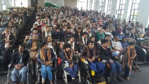 دشن اليوم بمحافظة إب مشروع زيارة وتكريم جرحى ومعاقي الجيش واللجان الشعبية في مختلف المديريات .