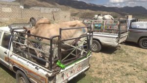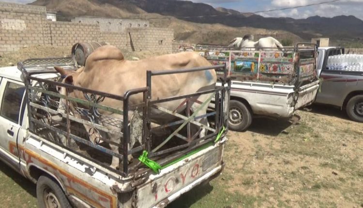 سير أبناء قرية الذاري بمديرية الرضمة محافظة إب قافلة متنوعة احتوت على المواد الغذائية والمشروبات ورؤوس من الأبقار والماشية وملابس وبطانيات وغيرها دعما للمرابطين من أبطال الجيش واللجان في جبهات الضالع .