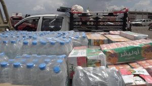 نظم المكتب السياسي لأنصار الله وتكتل الأحزاب والتنظيمات السياسية المناهضة للعدوان زيارة عيدية وسيروا قافلة غذائية وعينية للمرابطين من أبطال الجيش واللجان الشعبية في جبهة قعطبة بالضالع .