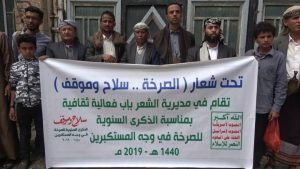 وأوضح بيان الوقفة التي حضرها مدير عام المديرية خليل أبو هاجرة ومدير الإرشاد بمكتب أوقاف المحافظة محمد مرشد أن سلاح الصرخة رغم بساطته إلا أنه قوي جدا في تأثيره على الأعداء وهو حربا نفسية تضرب معنوياتهم ومعيشتهم . داعين إلى التمسك بهذا الشعار الذي اطلقه الشهيد القائد حسين بدر الدين الحوثي في مثل هذه الأيام من العام ٢٠٠٢ م لتحصين الأمة من السقوط في مستنقع العمالة لأعدائها . مشددين على أهمية الحرص على المقاطعة الأمريكية والإسرائيلية فرصة لتنمية الإنتاج المحلي ..