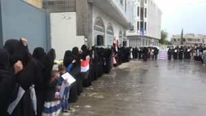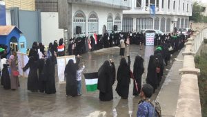 نظمت الهيئة النسائية الثقافية العامة بمحافظة إب وقفة نسائية أمام المبنى التابع للأمم المتحدة تنديدا بورشة المنامة وصفقة القرن التي تهدف إلى إنهاء القضية الفلسطينة .