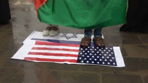 وفي الوقفة تم إحراق العلم الأمريكي والعلم الإسرائيلي وترديد الشعارات المعبرة عن كراهية الشعوب المسلمة لليهود وعدم قبول أي شكل من أشكال التطبيع مع هذا الكيان الغاصب والمحتل ..