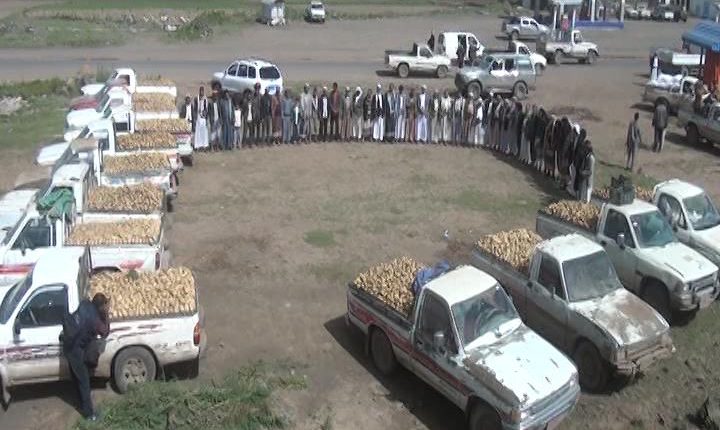 سير عدد من مزراعي منطقة عراس بمديرية يريم محافظة إب قافلة متميزة عددا من السيارات المحملة بجزء مما جادت بهم أرضهم من محصول البطاط دعما وإسنادا لأبطال الجيش واللجان الشعبية .