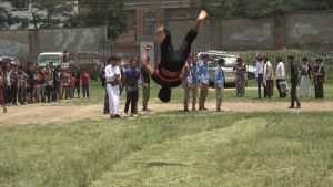 واحتوى العرض الذي شارك فيه المئات من طلاب المراكز الصيفية على العديد من الفقرات الإستعراضية والجمباز أثارت إعجاب الحاضرين .