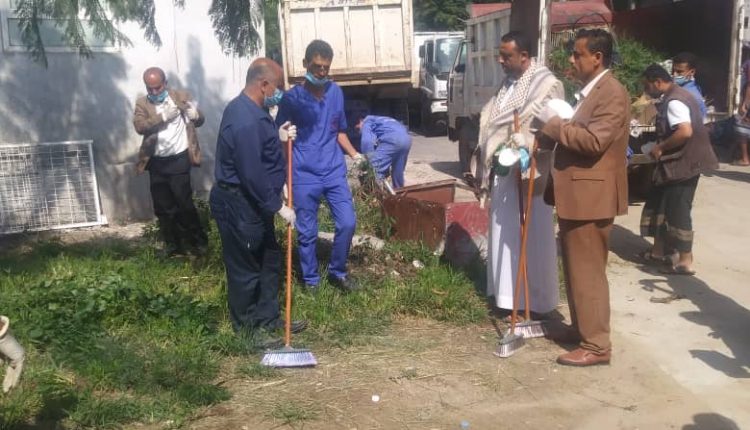 تدشين حملة نظافة في هيئة مستشفى الثورة العام بمدينة إب .